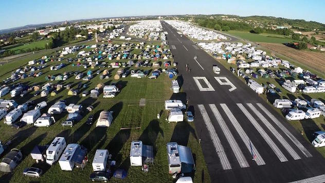 Dès le vendredi 31 Juillet, retrouvailles sur l’unique terrain de camping fédéral implanté sur l’aérodrome ceinturé par une piste automobile et plus exactement en extrémité de la piste d’atterrissage (et d’envol) longue de 1,5 km.
