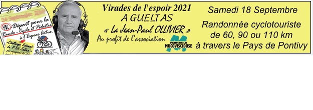 Les clubs de la région de Pontivy (56) se sont unis pour organiser la Jean-Paul Ollivier à GUELTAS (56) le Samedi 18 Septembre 2021 au profit de la Lutte contre la Mucoviscidose.