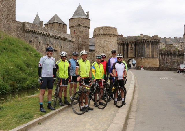 Soit. Choix de la destination : Fougères en empruntant également l’itinéraire du Paris Brest Paris par Loudéac, St-Méen le Grand, Hédé et St-Aubin du Cormier. 11 cyclos au départ samedi 24 Mai à 7h 30 pour 170 km. Compte tenu de la distance à parcourir, il est judicieux de rouler régulièrement sans disperser ses efforts. En cette première journée le temps est frais et le vent favorable. La côte de Bécherel (cité du livre) est franchie facilement et le groupe se pose à Hédé pour se restaurer sur la place de l’église (où nous rencontrons une retraitée native de St-Gérand !!!) Les derniers kilomètres avant Fougères sont parcourus rapidement. De ce fait nous arrivons à l’auberge de jeunesse de Fougères (point de chute) avec ¾ h d’avance sur l’horaire prévu. Qu’importe – prise de possession des locaux parfaitement adaptés à nos besoins. Et ensuite visite des quartiers moyennageux, des abords du château de cette belle ville de Fougères que quelques-uns d’entre nous découvrent. Notre guide Yannick connait parfaitement les lieux.